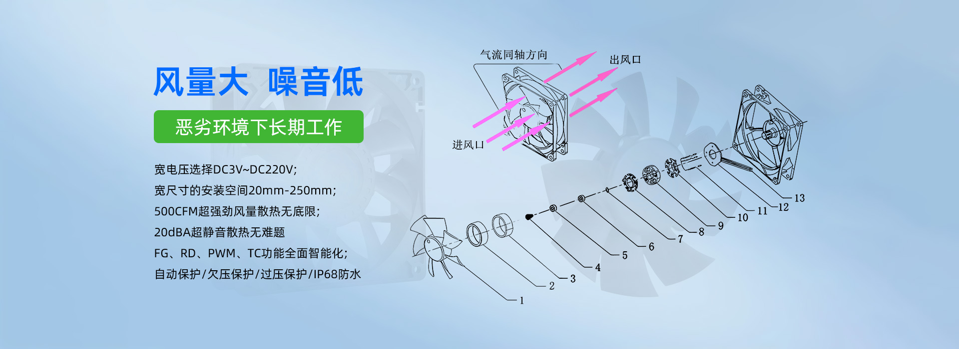 深圳市毅榮川電子科技有限公司于2005年創(chuàng)立于中國深圳、是一家專業(yè)研發(fā)、生產(chǎn)、銷售散熱風扇的高科技企業(yè)。所生產(chǎn)的直流風扇、交流風扇、鼓風機、防水/防塵風扇、EC變頻風扇、直流散熱風扇、汽車散熱風扇、靜音散熱風扇、支架散熱風扇、渦輪增壓風扇、直流散熱風機、直流離心風機、直流鼓風機、鼓風機廠家、新能源風扇、無刷馬達等,已廣泛應用于:通訊設(shè)備、UPS電源、醫(yī)療器械、電焊機、工控設(shè)備、家用電器、空氣凈化行業(yè)、汽車行業(yè)、投影儀、美容儀器、運動器材等行業(yè)領(lǐng)域。